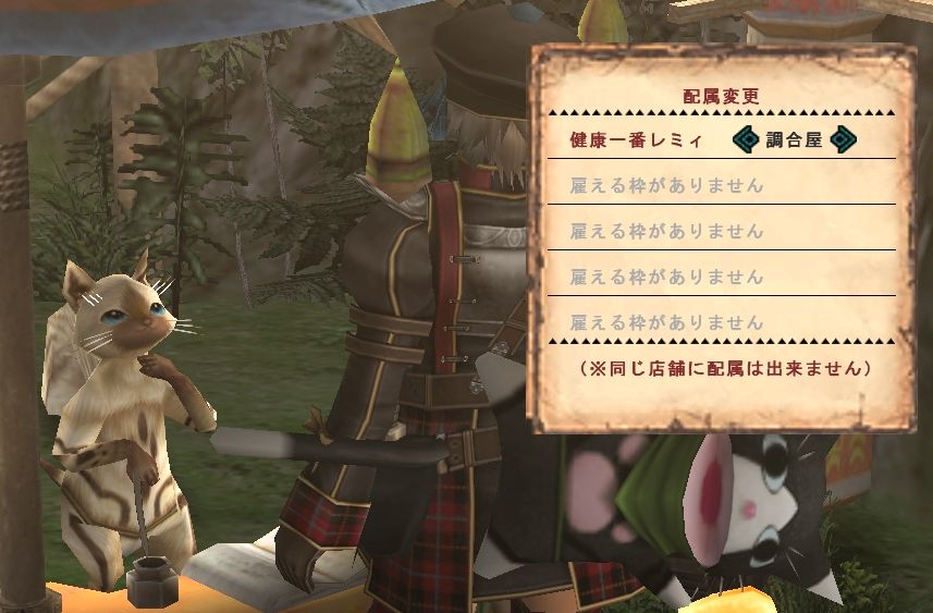 調合屋でしたぁん。管理ぬこで配置を決めないとダメらしい。