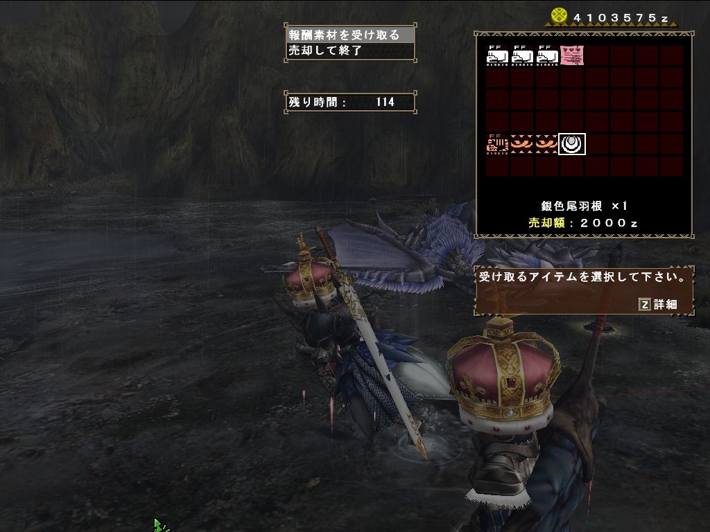 そして報酬画面。新しい素材は2種類ほど確認できました。まだある?