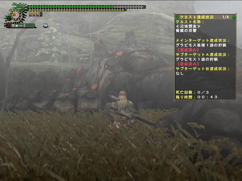 交互待ちで支給品貫通Lv2を頂き、開始44分30秒に白グラ討伐。