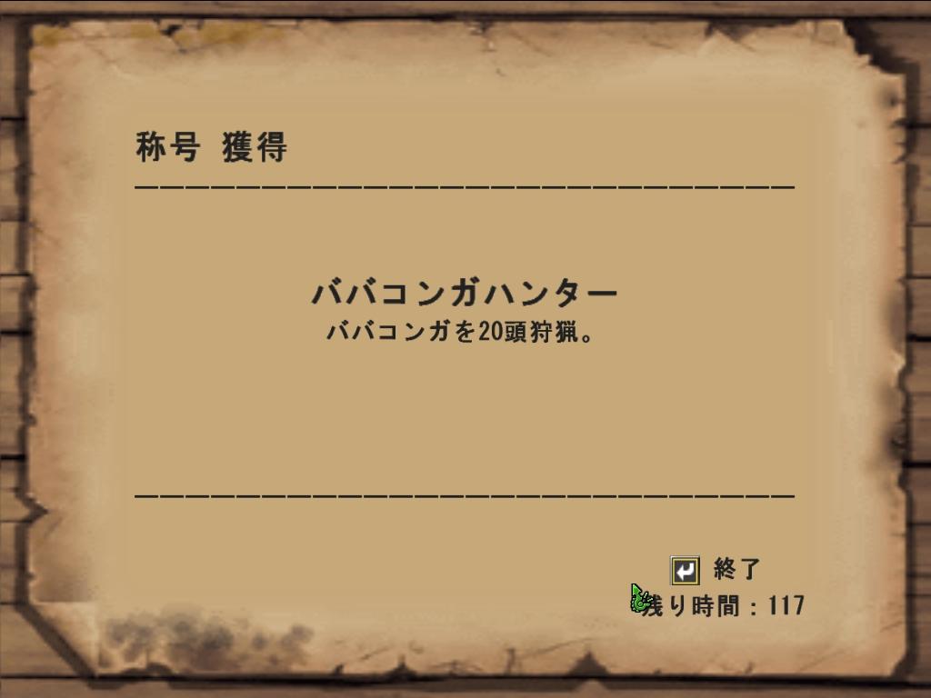めでたくババコンガハンターになりました。