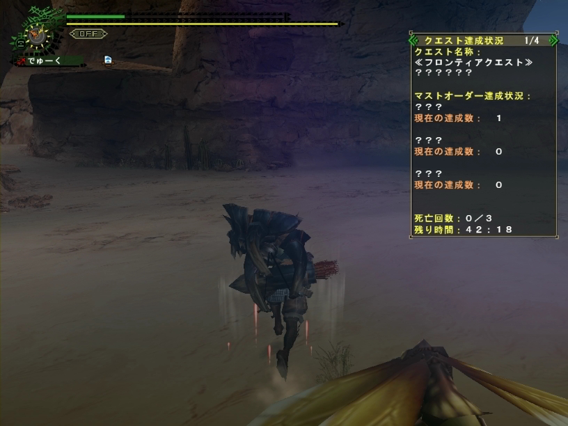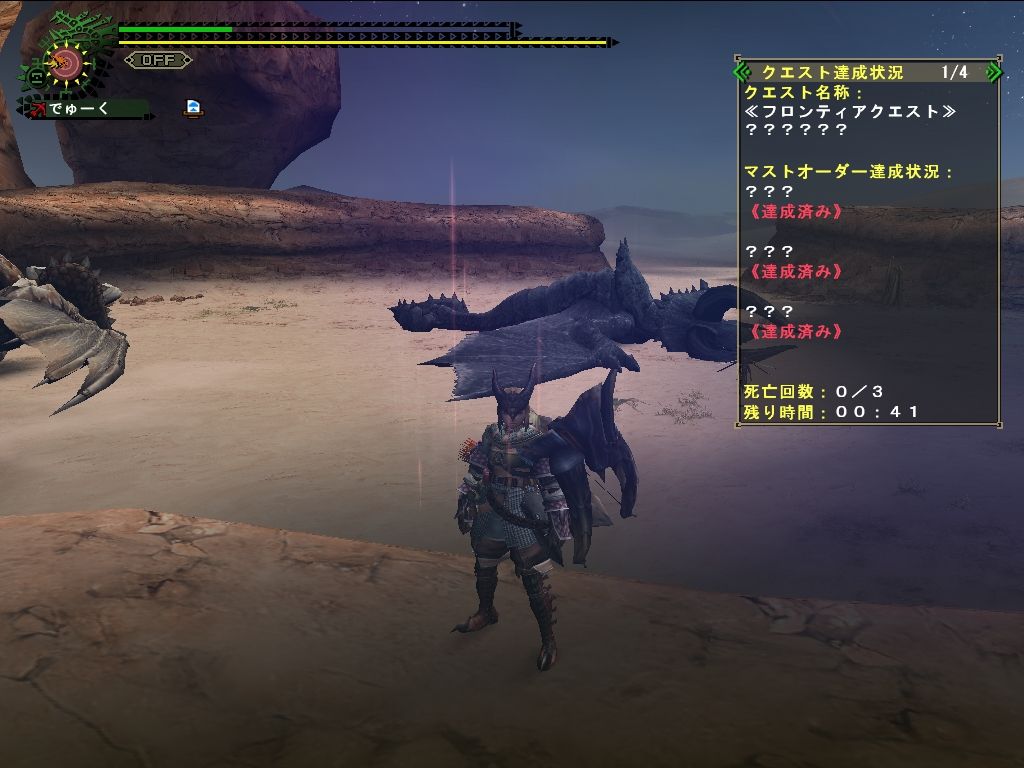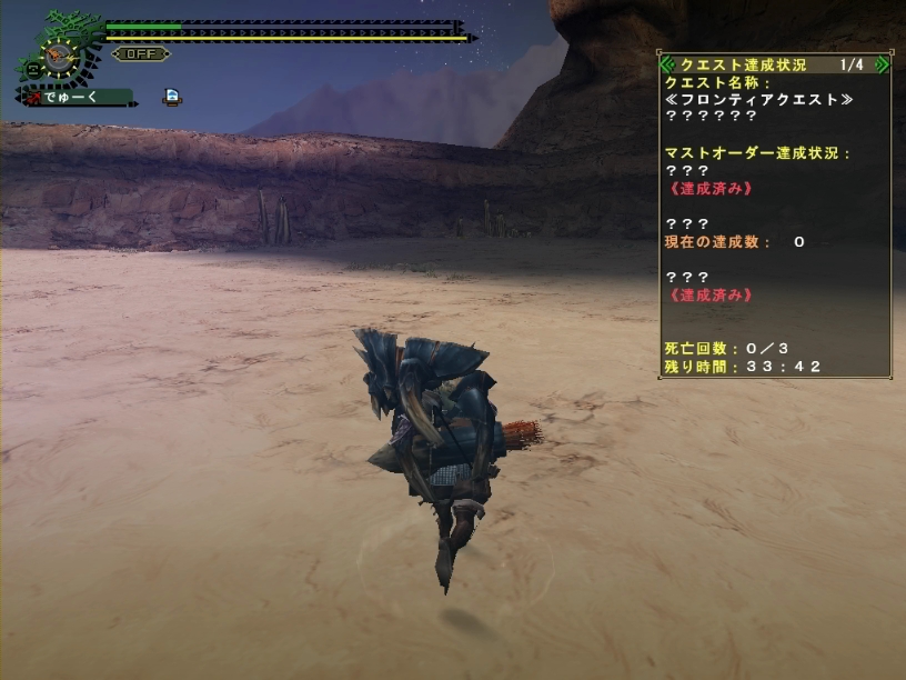 マスト:砂ディア2頭捕獲・黒ディア2頭討伐・生肉6頭討伐