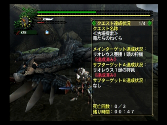 の定住区へ。4本太刀が相変わらずうまくいかず。