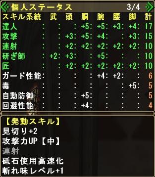 スキル:匠・攻撃【大】・見切り+3・高級耳栓