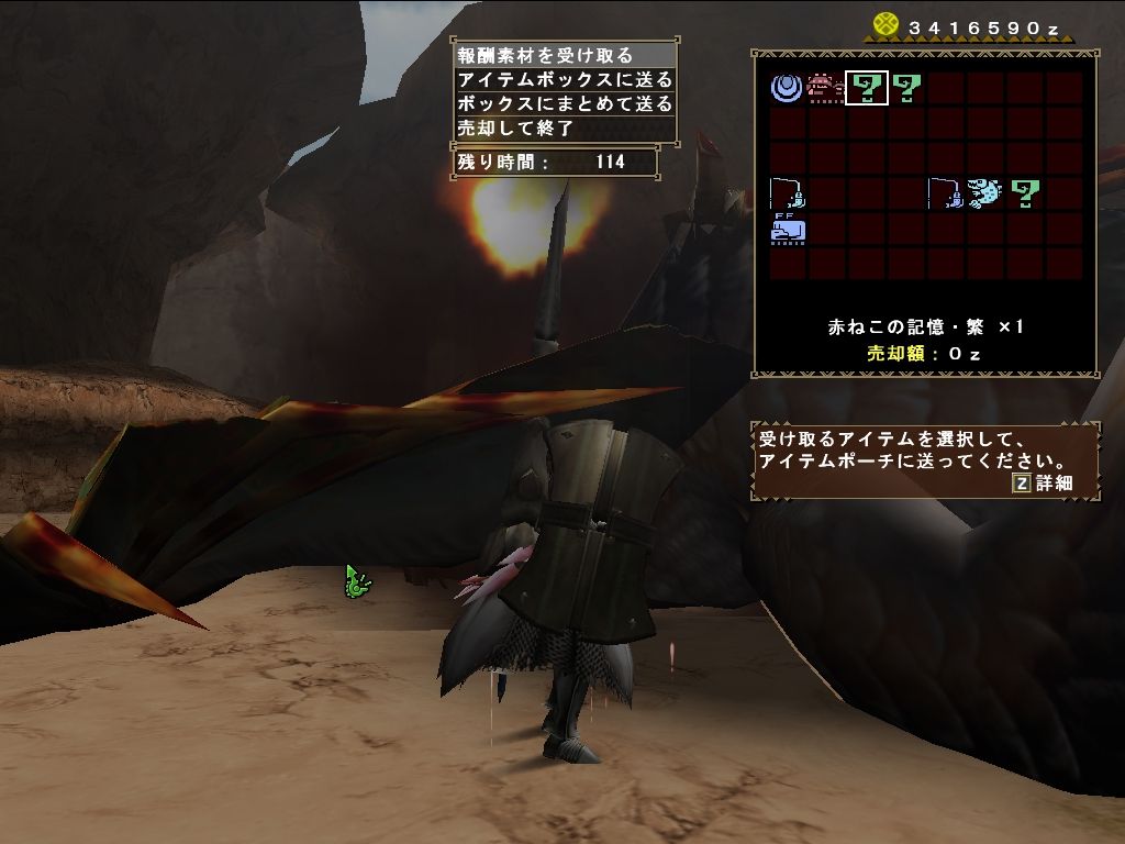 報酬はこんな感じ。今回はメイン・サブで3個の赤ねこの記憶・繁をゲット。