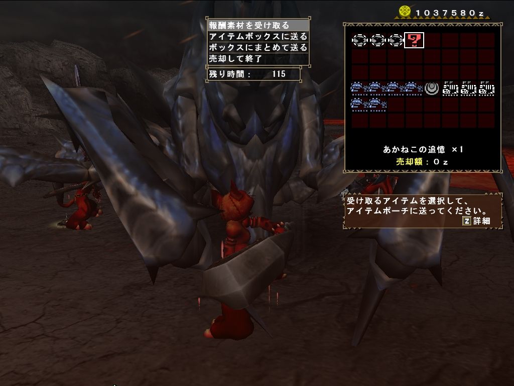 報酬では『あかねこの想い』を確認。どうやらこれであかねこグレネード