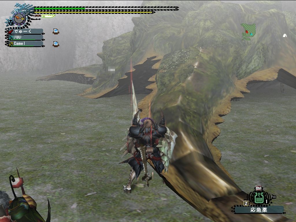 背甲を求めて防具を脱ぎ捨て猟団クエのシェンに。何とか