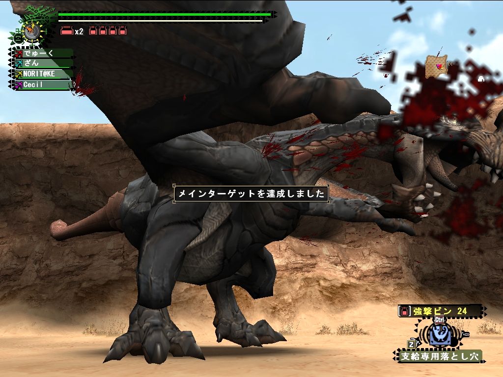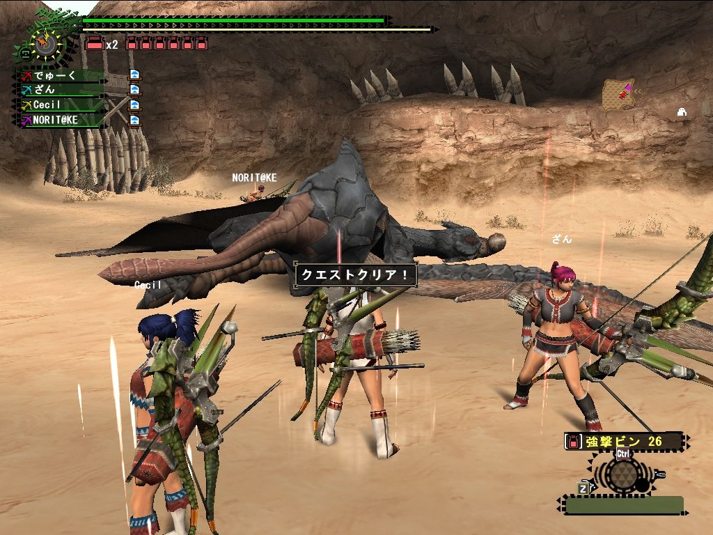 4人だと早い早い。ゲリョ演習でも拡散弓の威力がなかなかのものです。