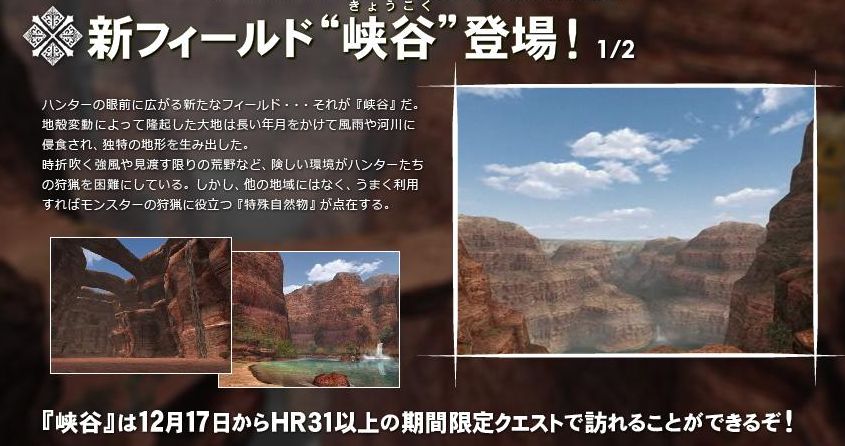 ようやく全貌が出てきたようです。新フィールドの『峡谷』らしいですです。
