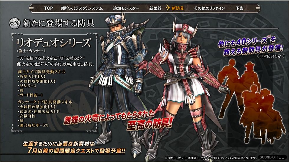 40シリーズを超える新防具が登場。新しいグラの防具も追加されるよう