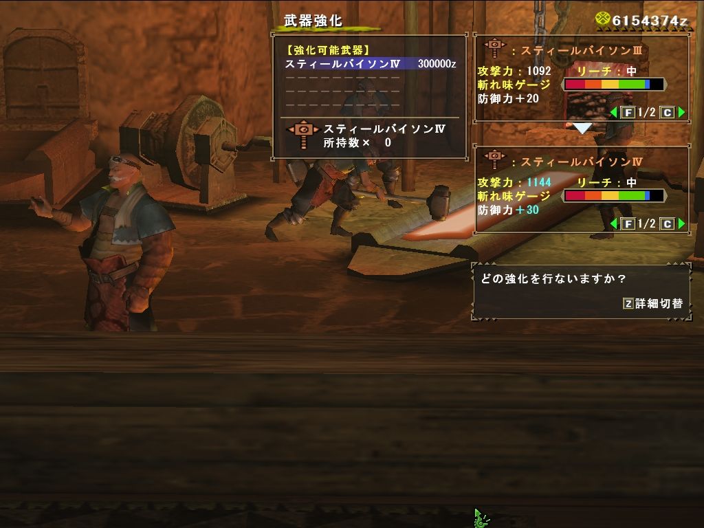 強化素材も手持ちで足りたのでさっくり強化してスティールバイソンⅣへ。