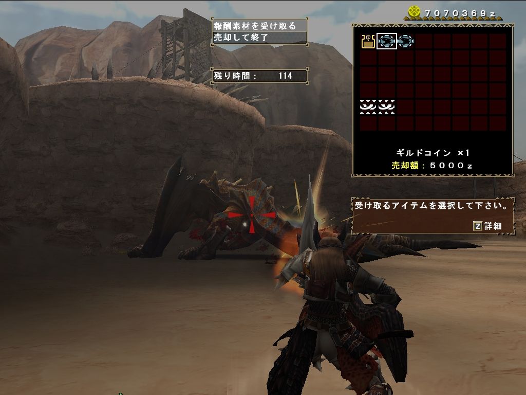 ギルドコイン2枚ゲット。ティガの剥ぎ取りは生肉でしたがね。