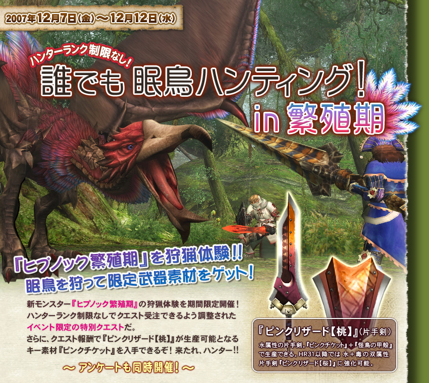 『ヒプノック繁殖期』の狩猟体験があるようです。