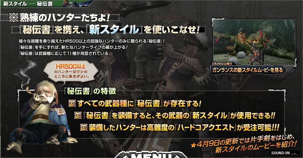 どうやら秘伝書を入手出来るのはHR500~。のようです。哮難易度クエ