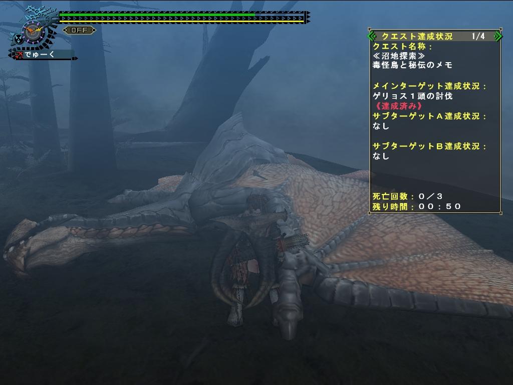 まずは軽くゲリョさん。沼地で軽くボコボコにされました。