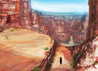 砂漠のような…崖のような…ついにハンターも空を飛ぶようです。たぶん。