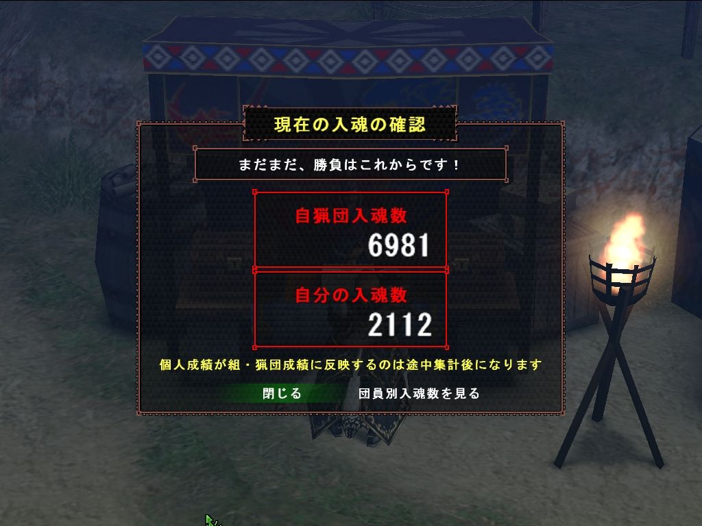 倍近くいくかな。頑張って入魂してくれた猟団の皆様、お疲れ様でした。