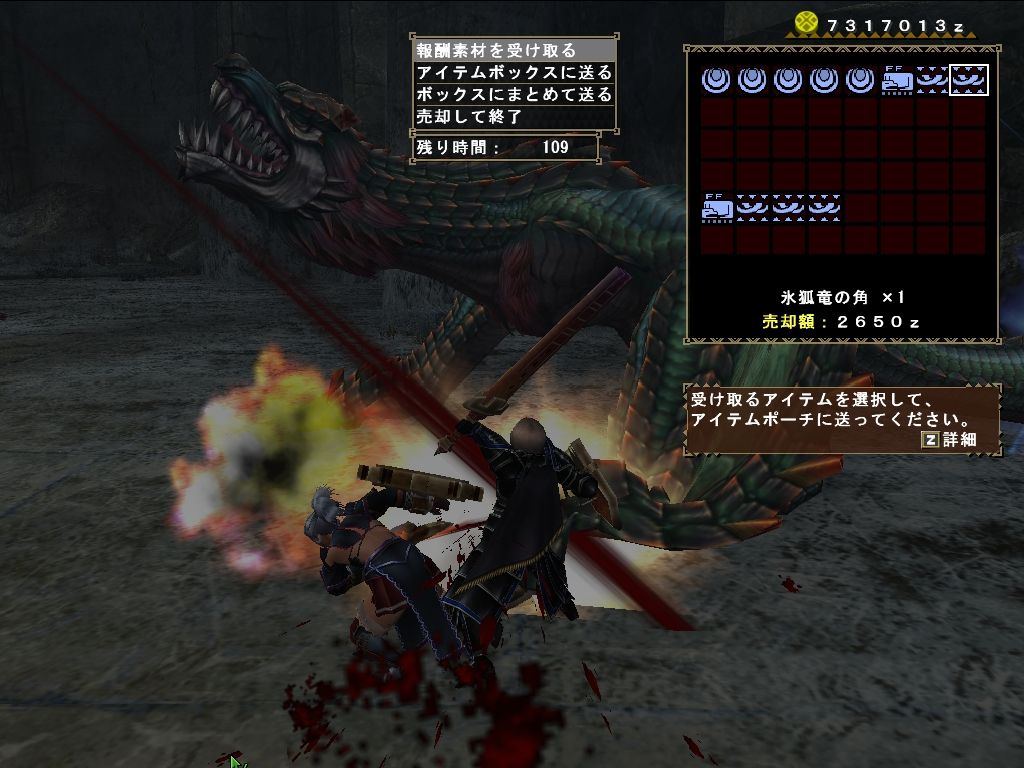 こちらが報酬画面。尻尾が全然出ません…しかしながら武器生産に要求