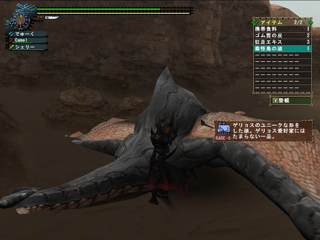 毒怪鳥の頭。こっそりと剥ぎ取りまくってますが初入手。