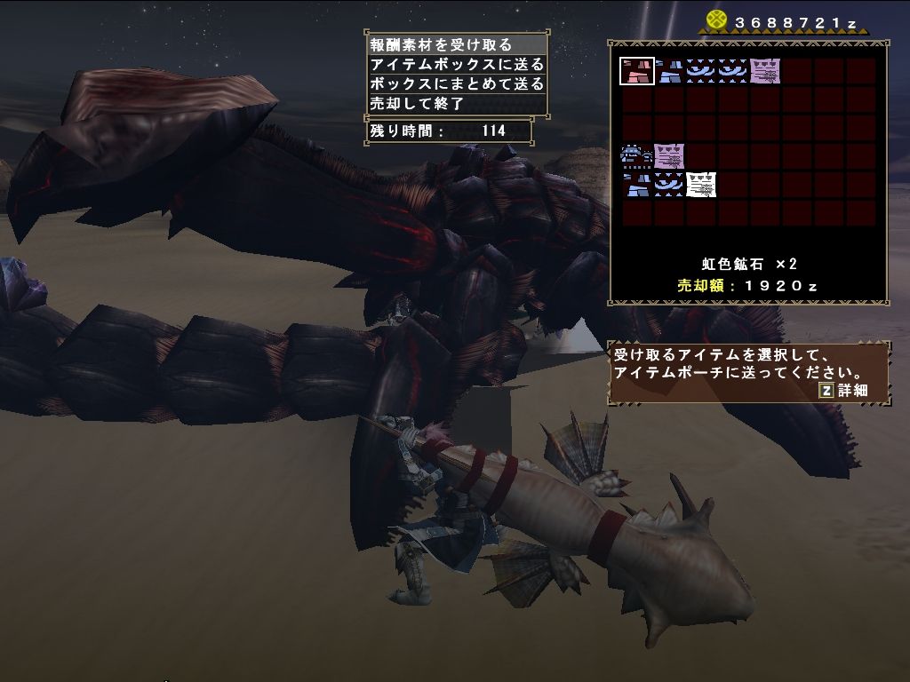 報酬では古龍のコインが出た。あと元気ドリンコ。それだけだったがね。