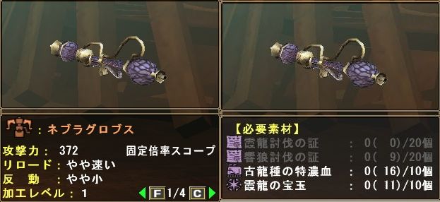 上回る性能(ミステル:322・氷400)。会心率も気になりますが、どうなんだ。