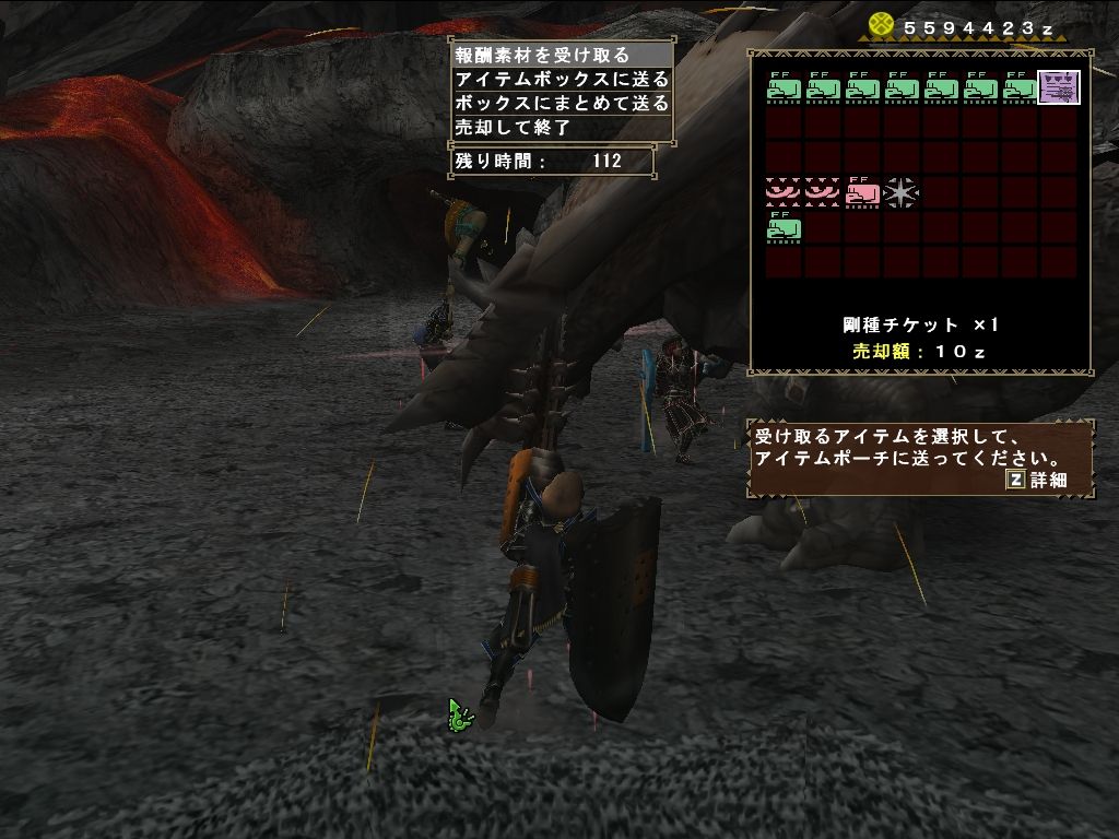 報酬がこちら。変バサも近接だとやたらタフだった。後半は火事場に切り