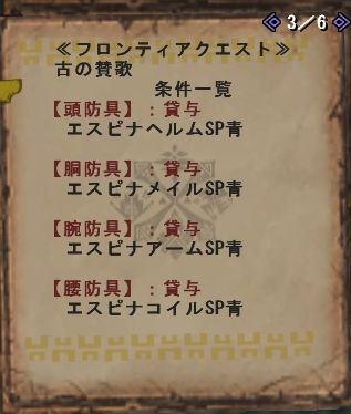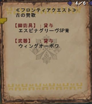 どうやら防具はエスピナSP青一式と、武器はウィングオーボワを