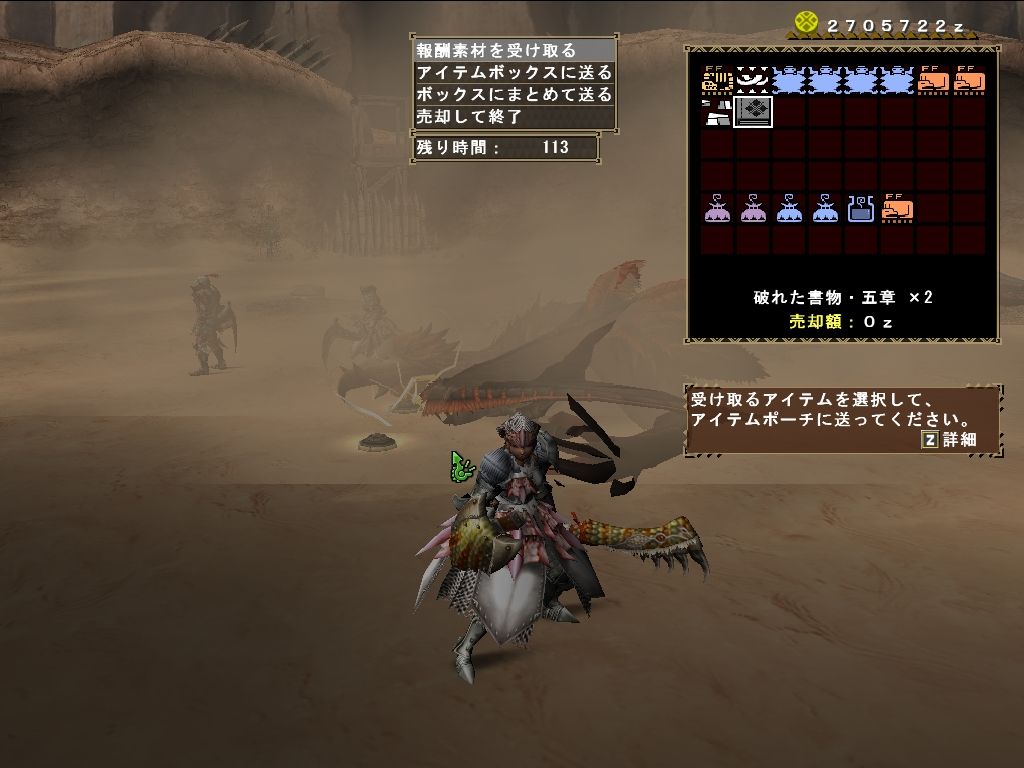 ゲリョスの捕獲タイミングがわからないので、フライング気味に捕獲。いい。
