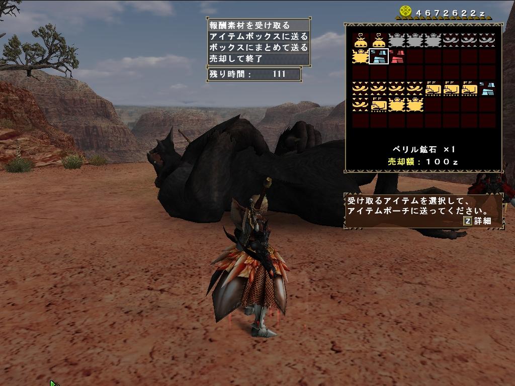報酬画面ではベリル鉱石が。意外に貴重な鉱石なので嬉しいところです。