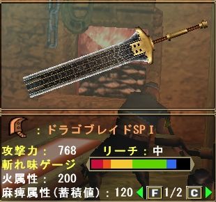 火&麻痺の双属性。ドラゴンブレイドかと思ったら違った(´・ω・`)