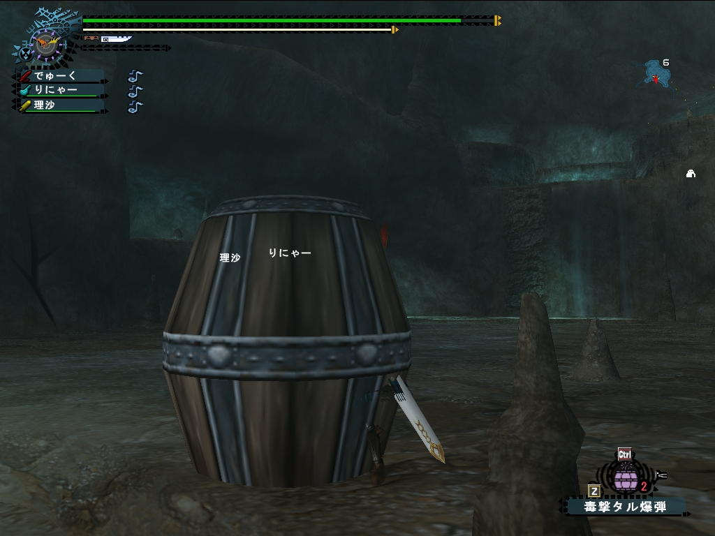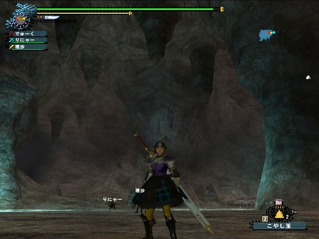 フレさんが鍾乳洞のトゲトゲを撃ち落としてました。こっそりと受け止めて
