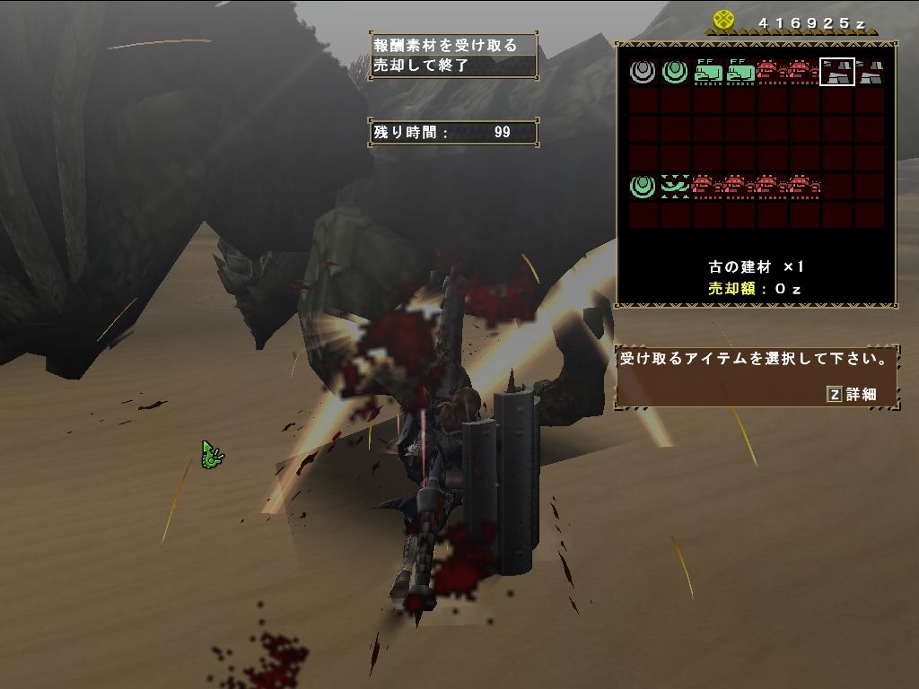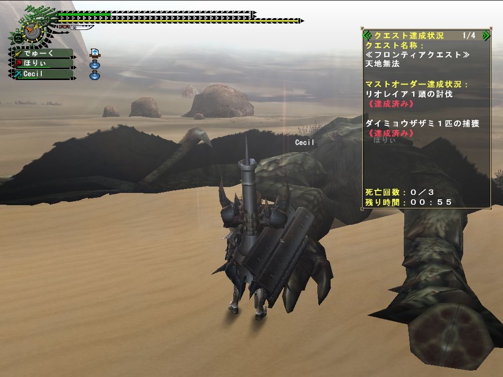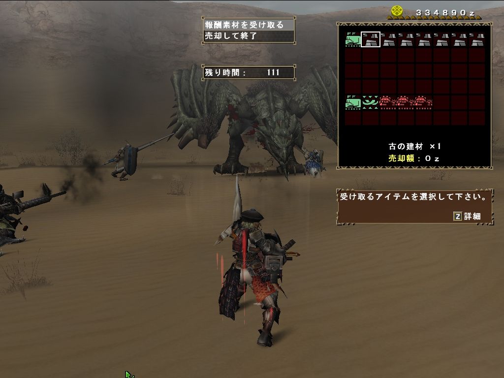 様子をみながらさっくりとクエスト成功。ダイミョウは捕獲、レイアは討伐の