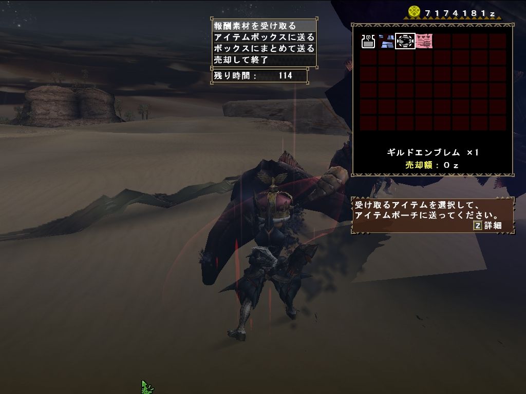 報酬からは何故かギルドエンブレムが…。嬉しいのだが…微妙な感じ。