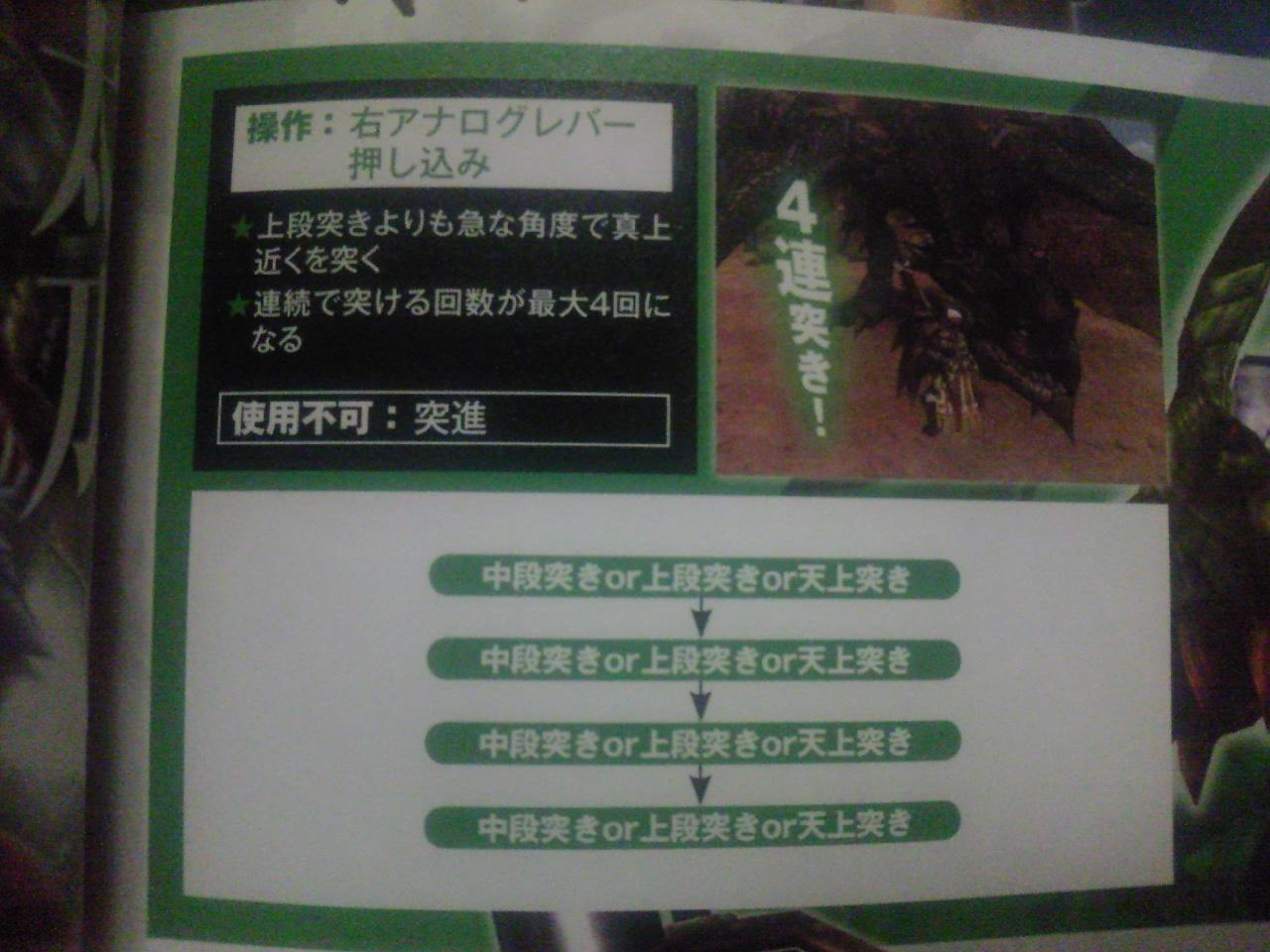 ランス:天上突き(急角度で上に突ける。最大4連突きまで。突進が使えません。)