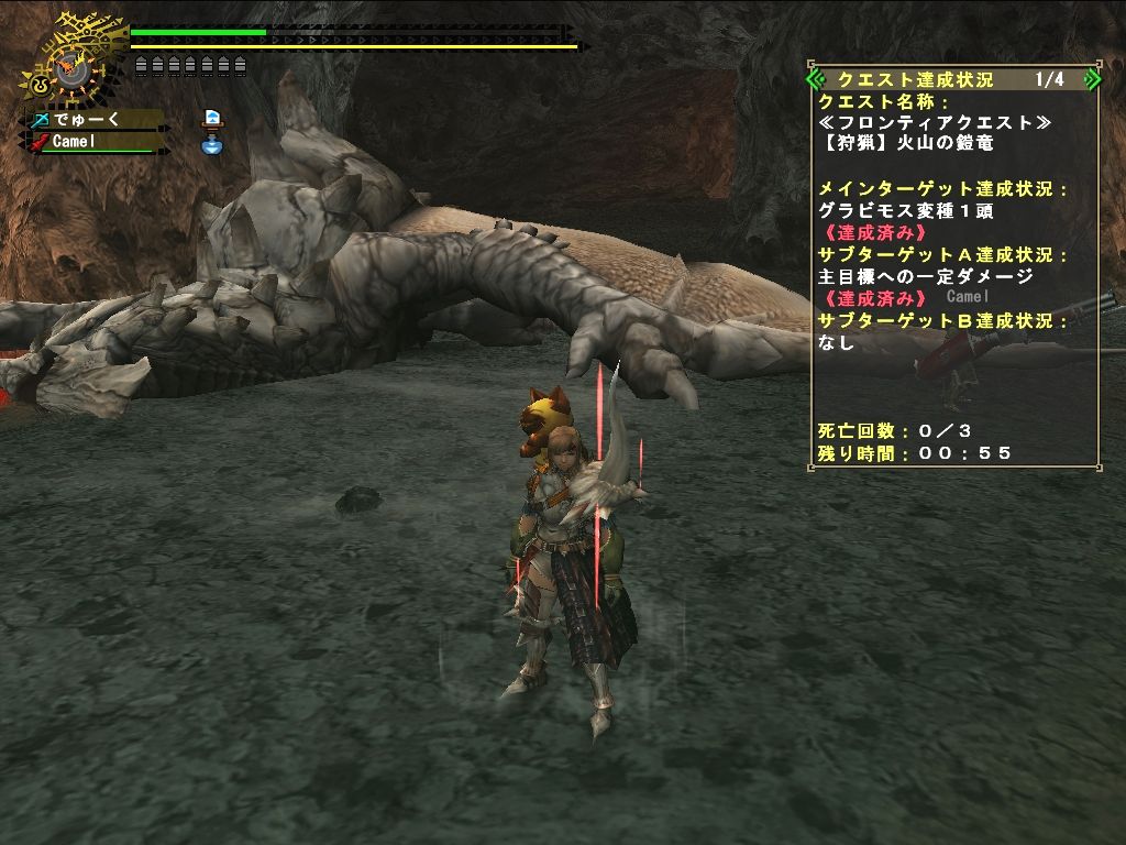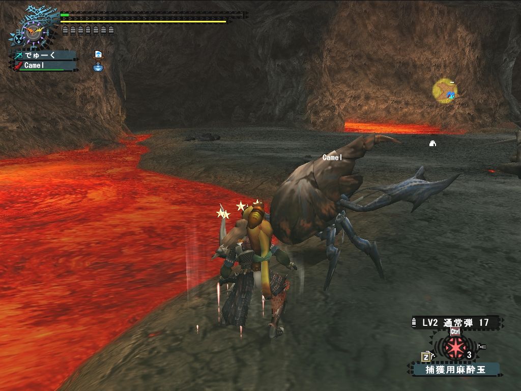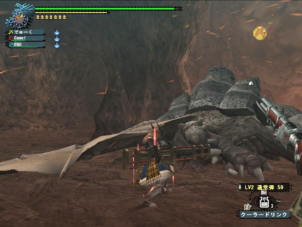 火炎弾2発でお腹(怯み値低い方)が怯むので、少しオレのターン。