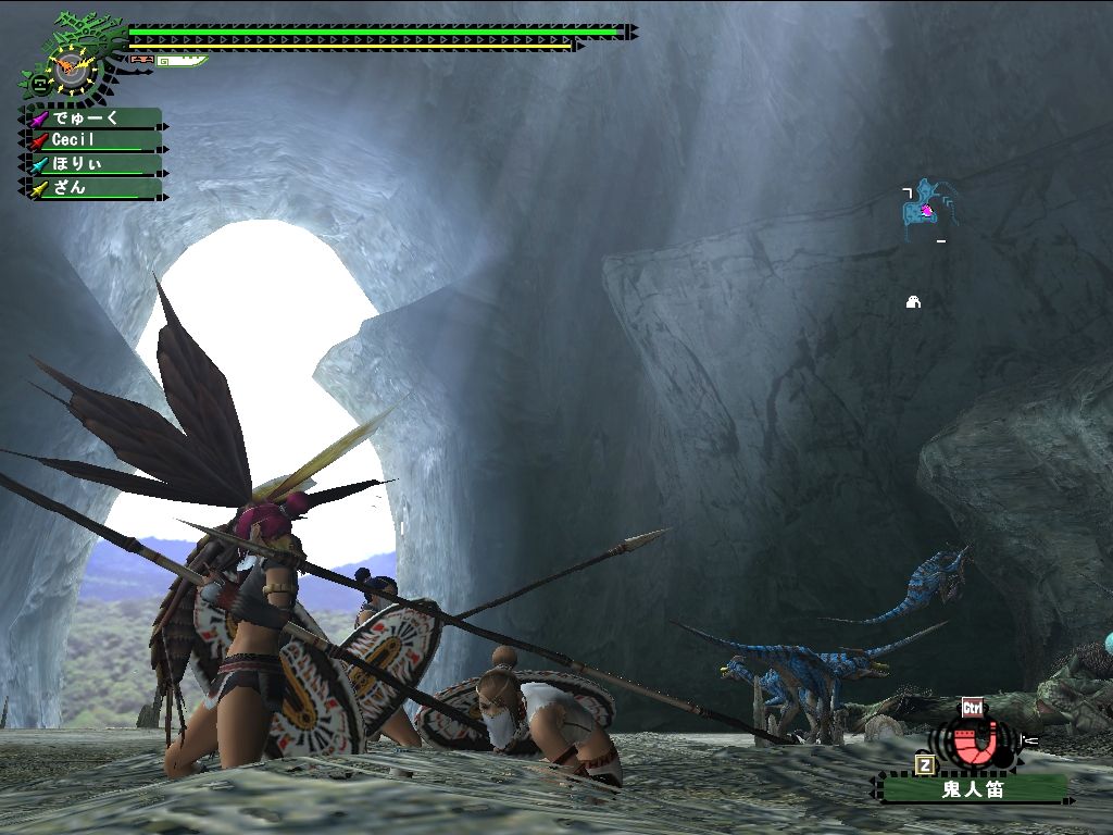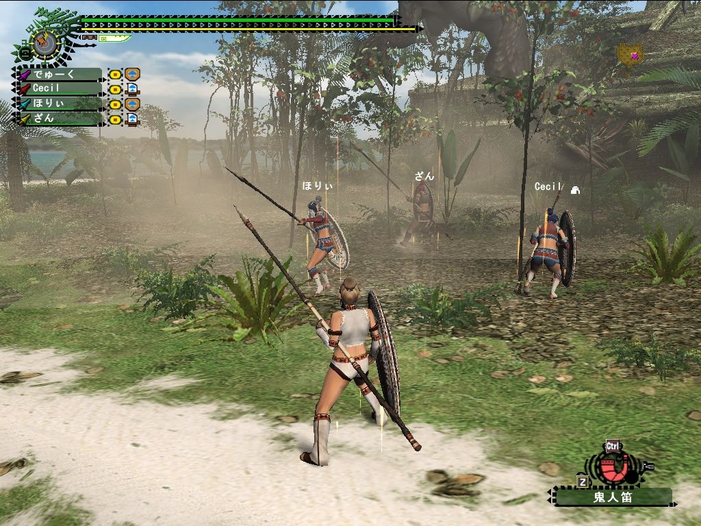 ブランゴキャップを被り必死に槍を突く原住民達。攻撃が凄く痛い…。