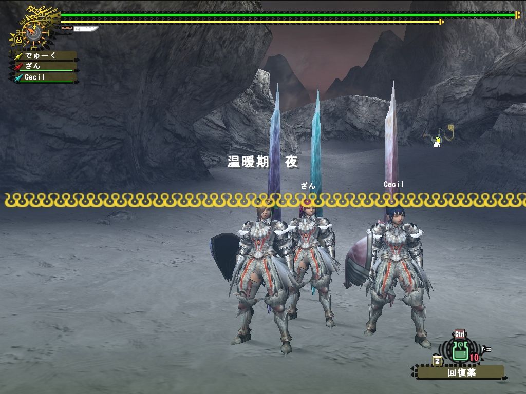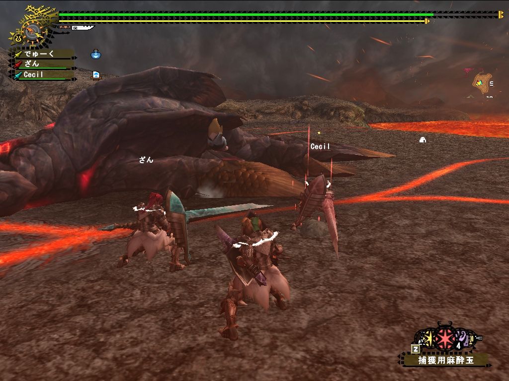 お揃い装備に身を包み、獄炎石確定クエストのヴォル×2匹クエストへ。