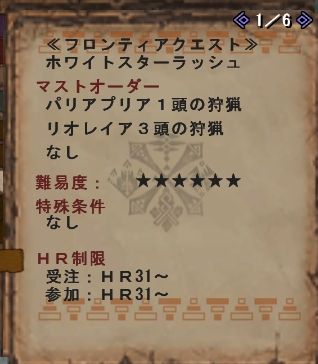 そして時間限定配信のホワイトスターラッシュに初挑戦。レイア3頭の狩猟と