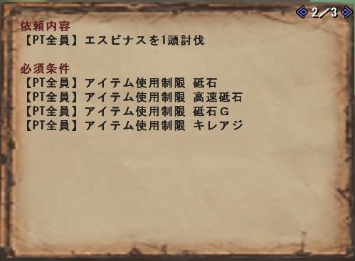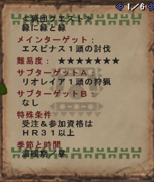 しかし相変わらず角は出ません。ふと猟団クエストでエスピクエが