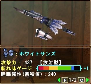ホワイトサンズって名前がかっこイイ! けど、ガンランスに睡眠属性ってどうなんでしょう?