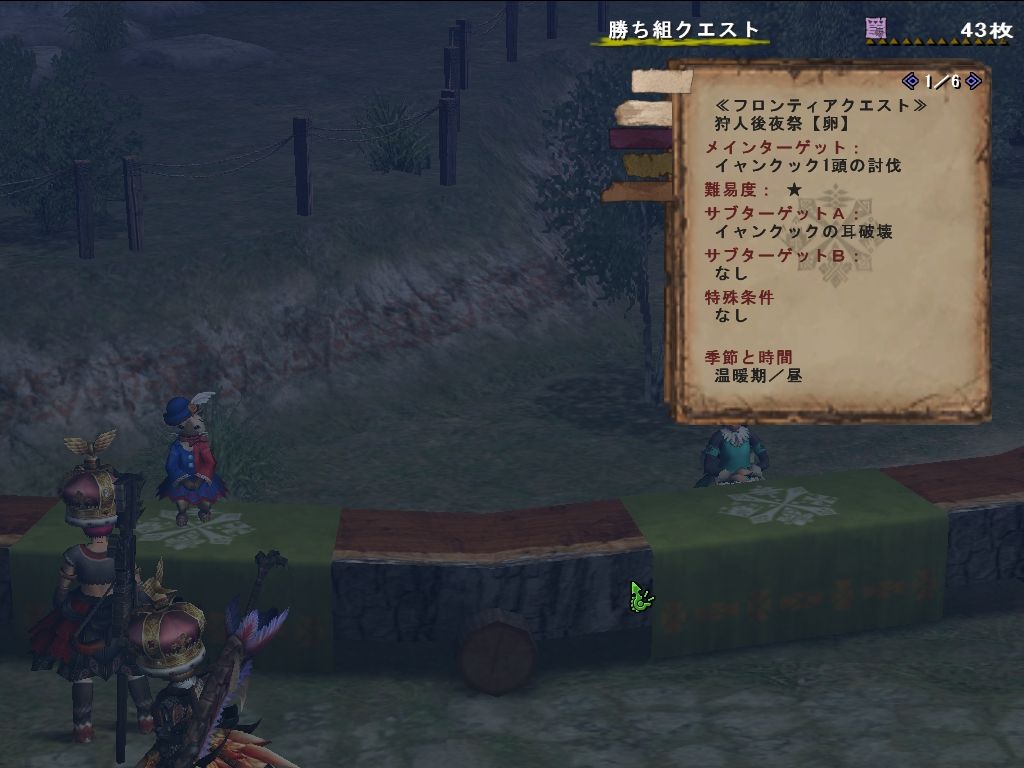 どうやらクエストは頭防具のみの様子。下位+頭のみでもそこそこの