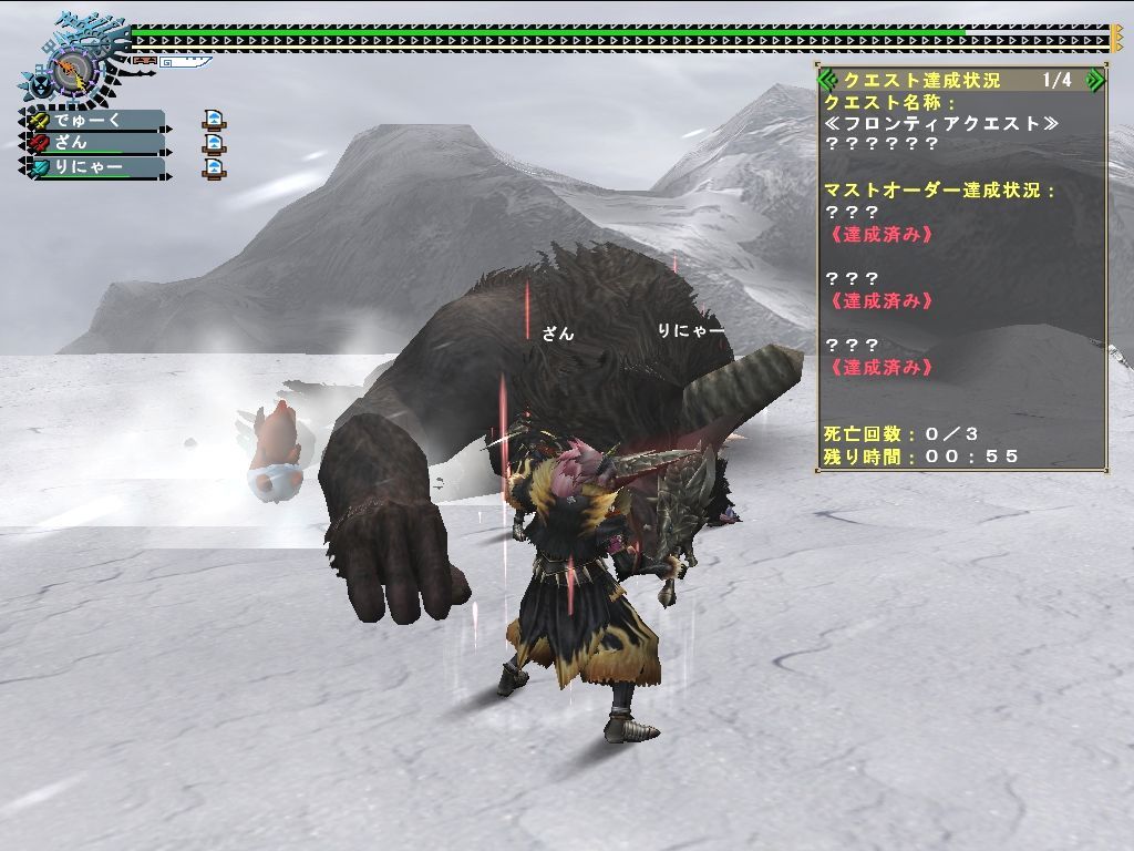 フレさん達とリベンジ。討伐であれば失敗もないようです。この猿がっ…。
