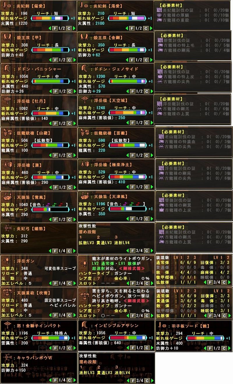 某所での拾い物。進化武器の進める方向や剛種武器の参考に。