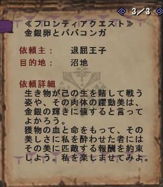 みたいな依頼詳細だけあってババコンガの討伐クエストです。