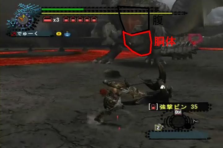 腹怯み値をスルーするように胴体怯み中は腹を狙っています。