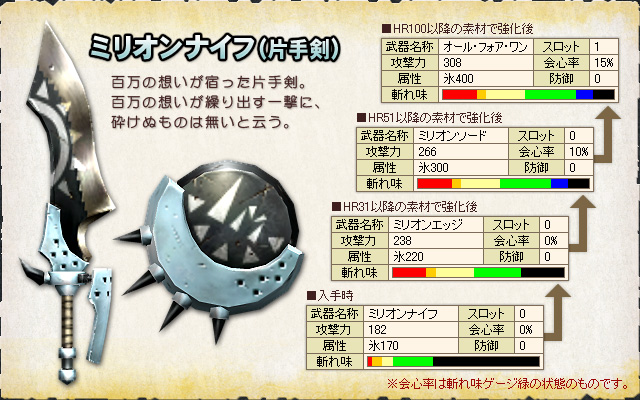 攻撃力:308 氷属性:400 改心率:10% スロット:1
