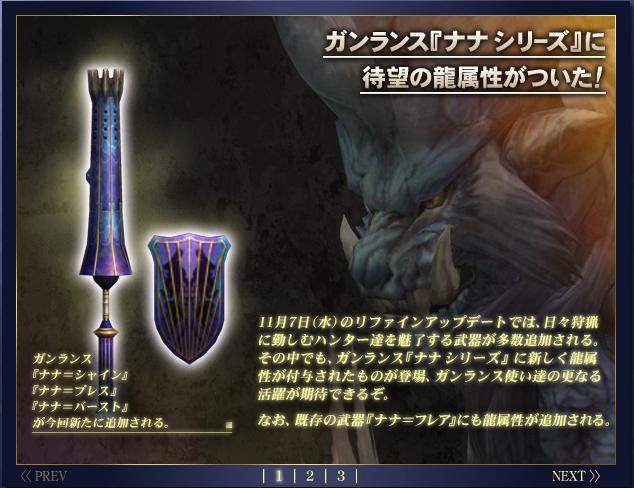 ガンランスに龍属性導入。『今後新たに生産が可能となる~』と