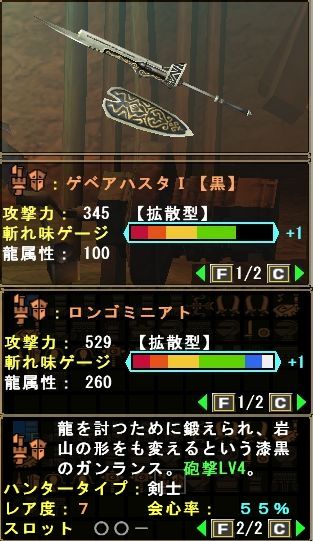 ロンゴミニアトに強化してやりました。見切り+3で会心率55%となかなか