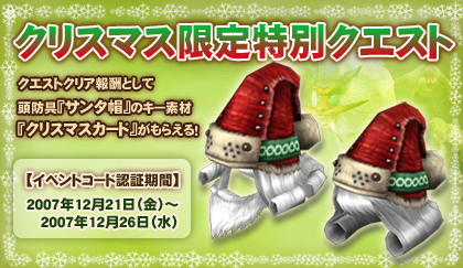 クリスマスイベントなるものがあるようですよ! また…頭装備だけですか…。 どうせなら…フル装備で…サンタさんになりたかったぜ…。