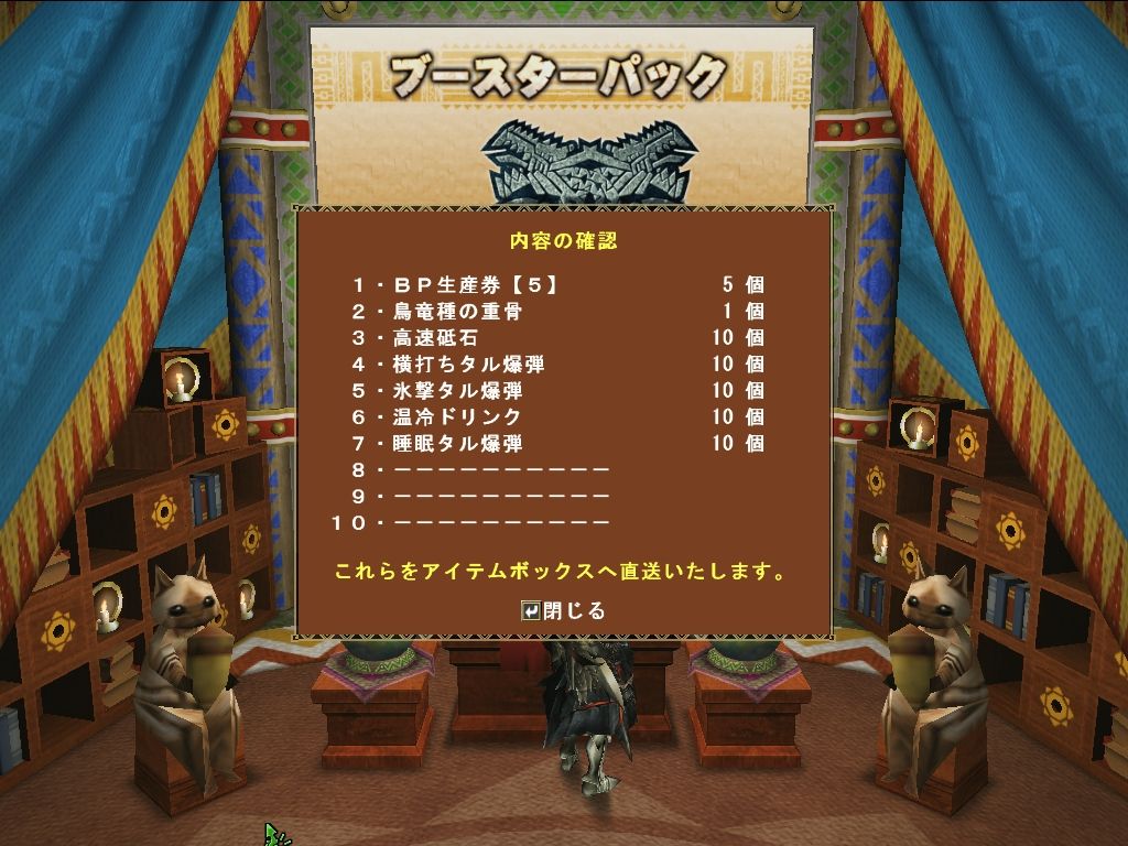 武器防具が生産出来るようす。僕はBP生産券【5】をゲットしました…。