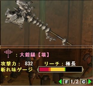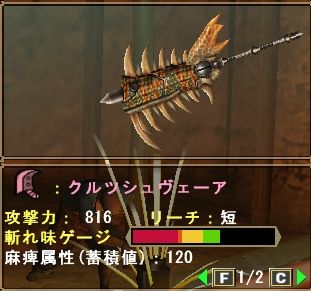 リーチ短の麻痺大剣。どうでも良いけど武器名が言いづらい。